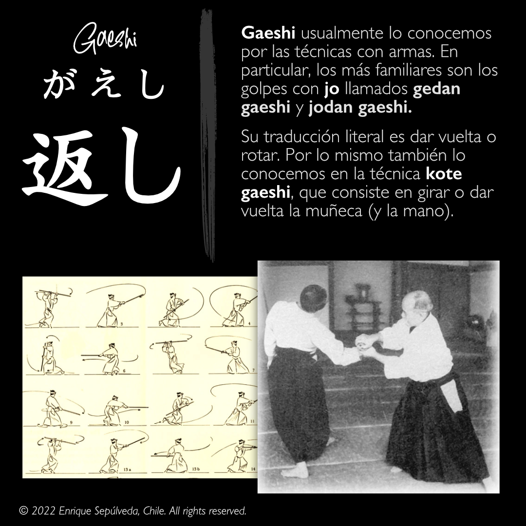 | Gaeshi | Marcha atrás. Como en Kotegaeshi , de Kote (muñeca); hassogaeshi ; etc. . |