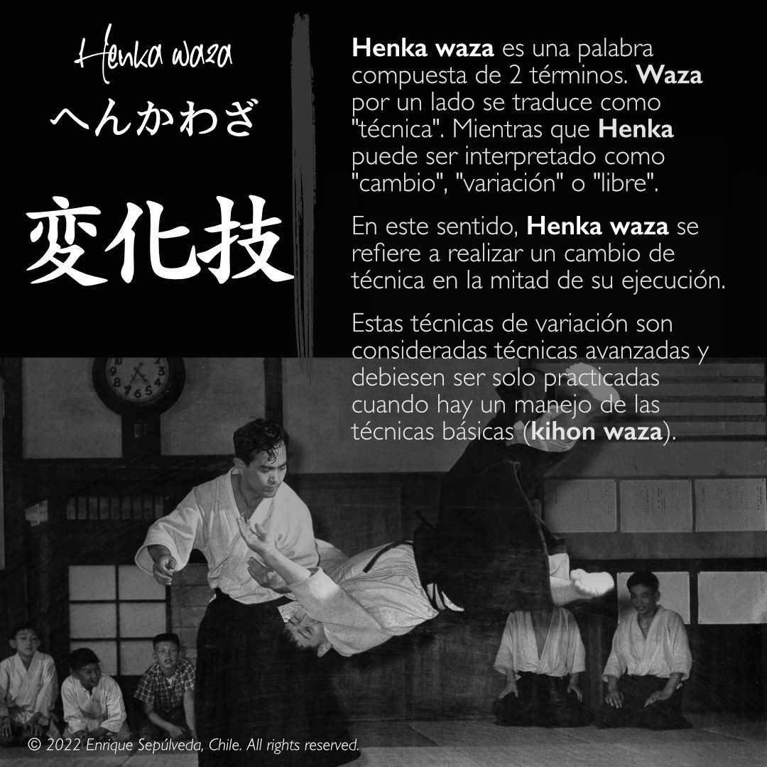 | Henka | Variación. Literalmente, hen significa inusual y ka significa cambio. Por ejemplo, henka waza son variaciones de la forma en que se completa una técnica estándar. Por ejemplo, comenzando IKKYO pero cambiando a IRIMI-NAGE. |
